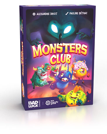 Nouveauté - Disponible en octobre 2025 Ce jeu est en Français MONSTERS CLUB – Un jeu de couverture… monstrueusement malin ! Bienvenue au Monsters Club , le repaire secret où d’adorables petites créatures se livrent une lutte féroce pour dominer le terrain. Pour gagner, vous devrez avoir la famille de monstres la plus nombreuse visible à la fin… sans vous faire écraser (au sens propre) par les autres ! Un jeu simple et stratégique Chaque joueur incarne secrètement une famille de monstres et pose, à son tour, une carte dans l’aire de jeu. Deux choix s’offrent à vous : – recouvrir de moitié une ou deux cartes, – ou en recouvrir une complètement. Plus la partie avance, plus le plateau devient un champ de bataille tactique où chaque mouvement compte ! Protégez vos monstres ! Un monstre entouré de 4 côtés devient invulnérable : il ne peut plus être recouvert. À vous de construire des défenses solides… sans trop révéler votre identité ! Le twist final : le Monstre Noir À la fin de la partie, chaque joueur libère son Monstre Noir , une carte spéciale capable d’éliminer n’importe quel monstre en jeu. Un coup de théâtre qui peut tout changer à la dernière seconde ! MONSTERS CLUB , c’est un concentré de stratégie, de bluff et de rebondissements dans un format accessible et terriblement fun. Un plaisir monstre pour toute la famille ! Un jeu éco-friendly, labellisé "Eco-friendly Game" "Monsters Club" se distingue par son engagement envers l'écologie. Conscient de l'impact environnemental, ce jeu utilise exclusivement des matériaux certifiés FSC pour la boîte, les cartes et autres composants en carton du jeu, éliminant ainsi l'utilisation du plastique. Contenu - 50 cartes monstres - 5 cartes famille de Monstres - 5 cartes Monstre noir - 16 jetons (punchs), - Règles du jeu Informations générales Age: A partir de 7 ans Pour 2 à 4 joueurs Durée d’une partie: 15 à 20 minutes Langue : Français et Anglais Dimensions de la boite: 15 x 11 x 2 cm